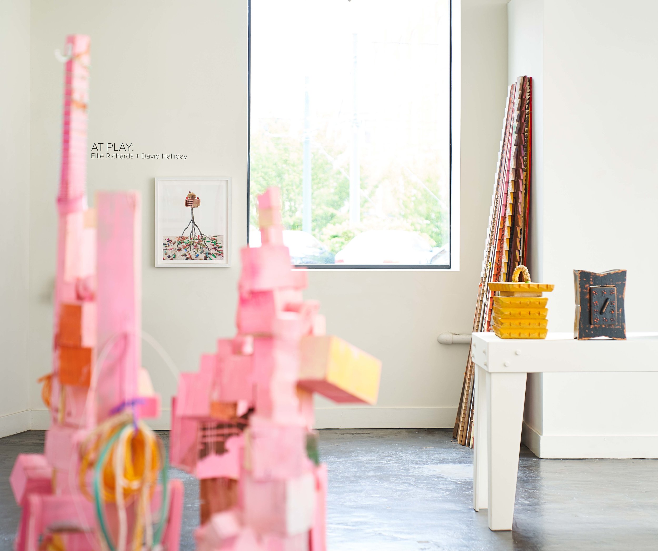 AT PLAY pairs New York-based photographer, David Halliday, with Penland-based sculptor, Ellie Richards. Ellie and David reorganize and repurpose the ordinary in ways that are more satirical than serious. Their work appears both familiar and foreign through manipulation of the everyday object and the traditional notion of built environments. Both artists construct sites where play is as much a place as work is a state of mind. In Ellie’s words, they “want to help people arrive at a playful space in their lives.”